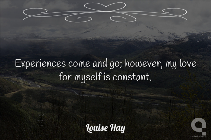Experiences come and go; however, my love for myself is constant. Louise Hay