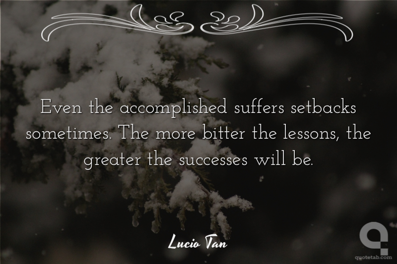 Even the accomplished suffers setbacks sometimes. The more bitter the lessons, the greater the successes will be. Lucio Tan