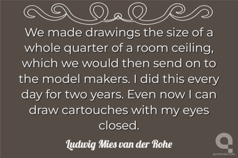 We made drawings the size of a whole quarter of a room ceiling, which we would then send on to the model makers. I did this every day for two years. Even now I can draw cartouches with my eyes closed. Ludwig Mies van der Rohe