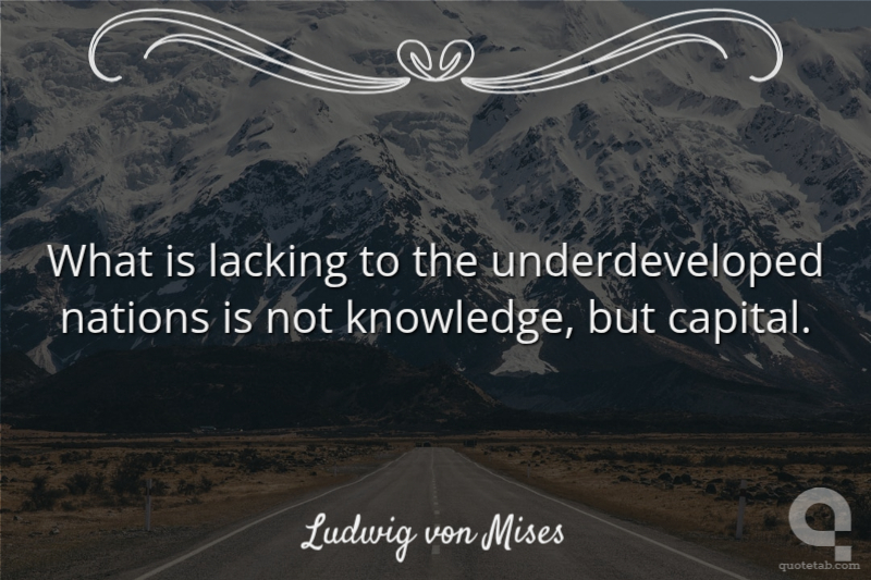 What is lacking to the underdeveloped nations is not knowledge, but capital. Ludwig von Mises
