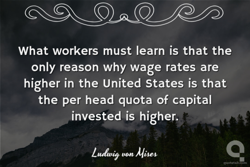 What workers must learn is that the only reason why wage rates are higher in the United States is that the per head quota of capital invested is higher. Ludwig von Mises
