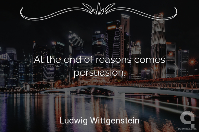 At the end of reasons comes persuasion. Ludwig Wittgenstein