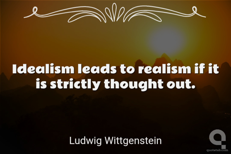 Idealism leads to realism if it is strictly thought out. Ludwig Wittgenstein
