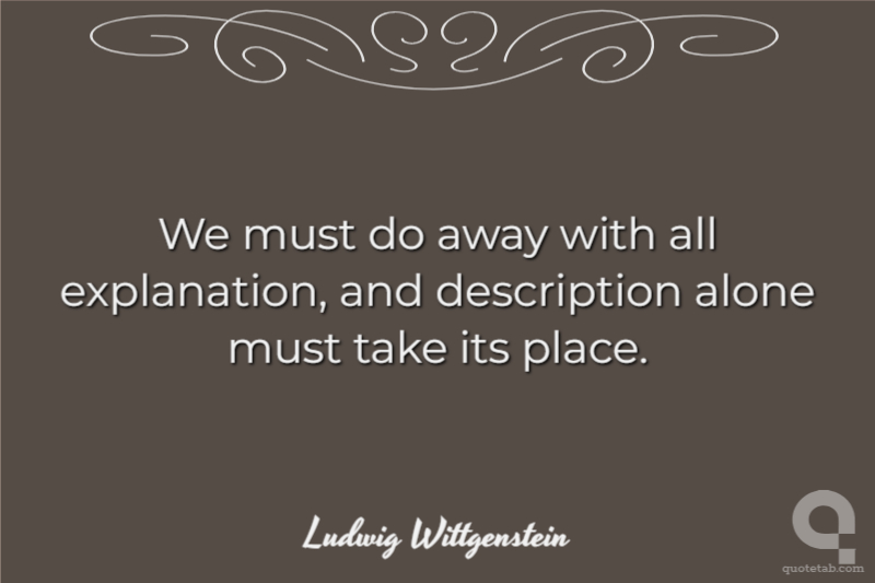 We must do away with all explanation, and description alone must take its place. Ludwig Wittgenstein