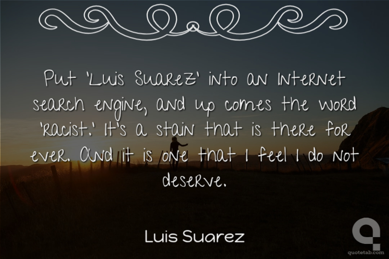 Put 'Luis Suarez' into an Internet search engine, and up comes the word 'racist.' It's a stain that is there for ever. And it is one that I feel I do not deserve. Luis Suarez