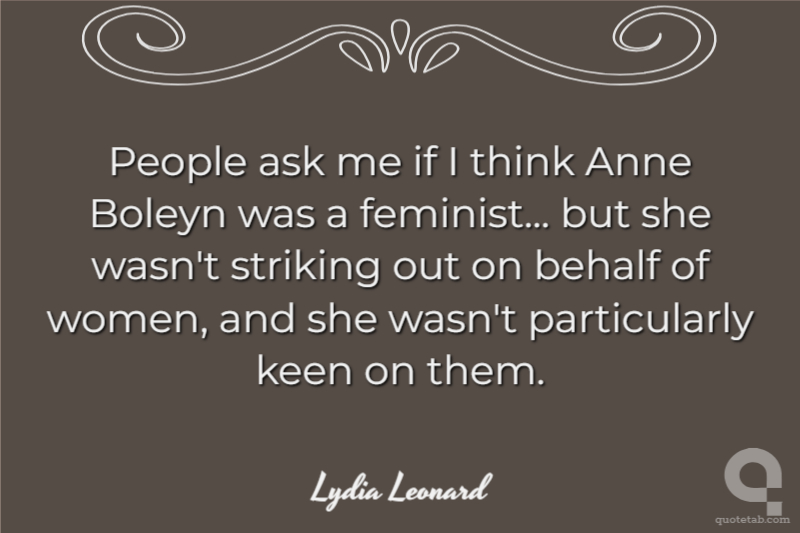 People ask me if I think Anne Boleyn was a feminist... but she wasn't striking out on behalf of women, and she wasn't particularly keen on them. Lydia Leonard