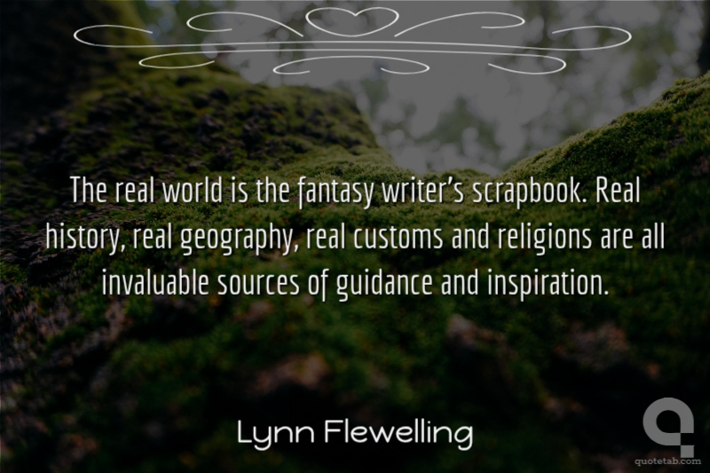 The real world is the fantasy writer's scrapbook. Real history, real geography, real customs and religions are all invaluable sources of guidance and inspiration. Lynn Flewelling