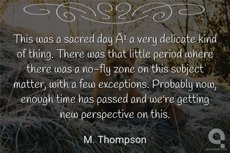 This was a sacred day ù a very delicate kind of thing. There was that little period where there was a no-fly zone on this subject matter, with a few exceptions. Probably now, enough time has passed and we're getting new perspective on this. M. Thompson