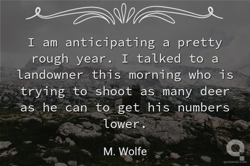 I am anticipating a pretty rough year. I talked to a landowner this morning who is trying to shoot as many deer as he can to get his numbers lower. M. Wolfe