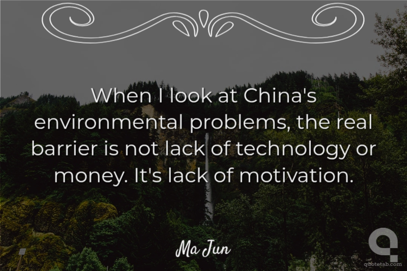 When I look at China's environmental problems, the real barrier is not lack of technology or money. It's lack of motivation. Ma Jun