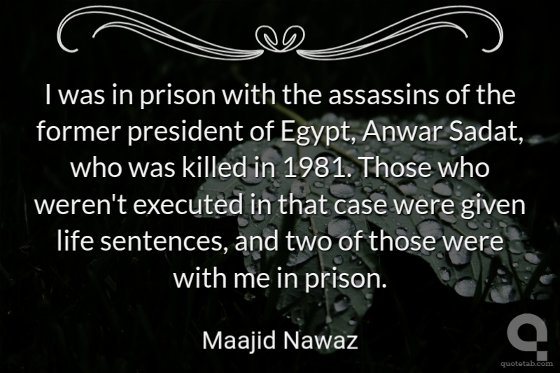 I was in prison with the assassins of the former president of Egypt, Anwar Sadat, who was killed in 1981. Those who weren't executed in that case were given life sentences, and two of those were with me in prison. Maajid Nawaz