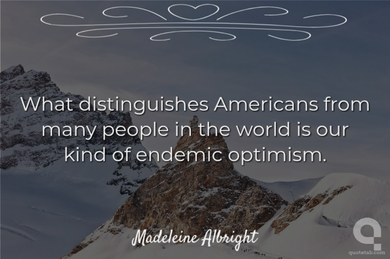 What distinguishes Americans from many people in the world is our kind of endemic optimism. Madeleine Albright