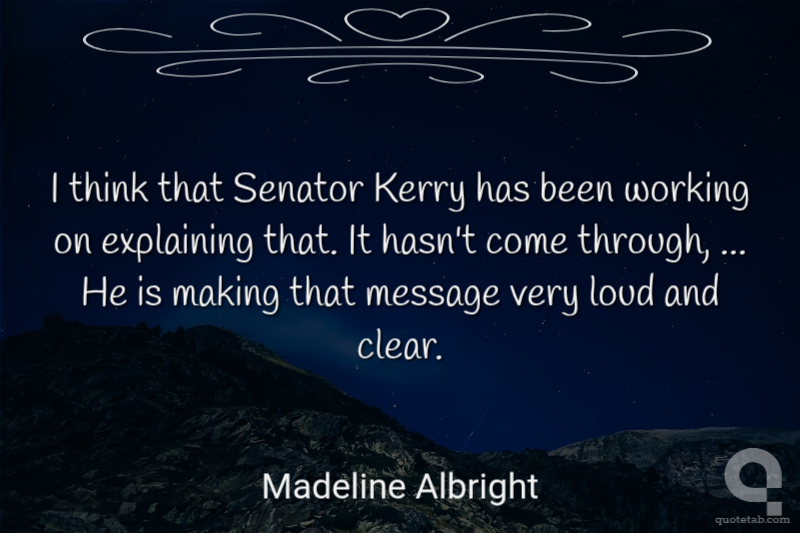 I think that Senator Kerry has been working on explaining that. It hasn't come through, ... He is making that message very loud and clear. Madeline Albright
