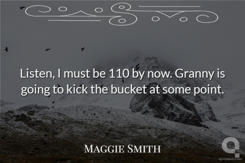 Listen, I must be 110 by now. Granny is going to kick the bucket at some point. Maggie Smith
