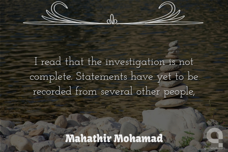 I read that the investigation is not complete. Statements have yet to be recorded from several other people, Mahathir Mohamad