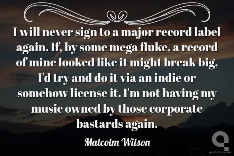 I will never sign to a major record label again. If, by some mega fluke, a record of mine looked like it might break big, I'd try and do it via an indie or somehow license it. I'm not having my music owned by those corporate bastards again. Malcolm Wilson