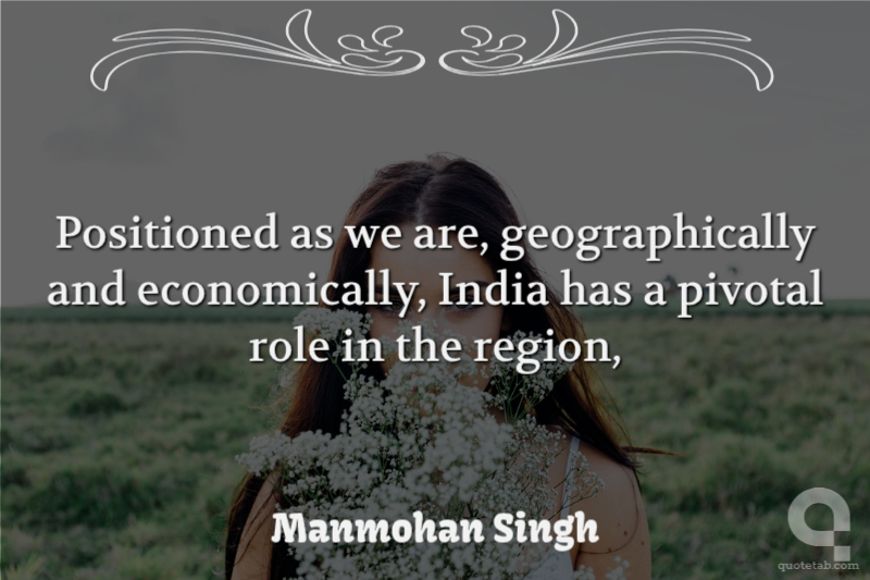 Positioned as we are, geographically and economically, India has a pivotal role in the region, Manmohan Singh