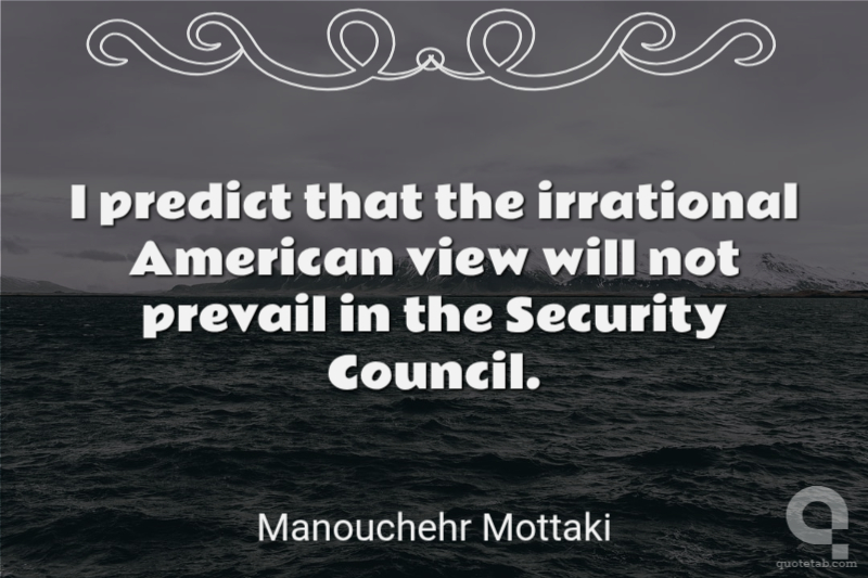 I predict that the irrational American view will not prevail in the Security Council. Manouchehr Mottaki