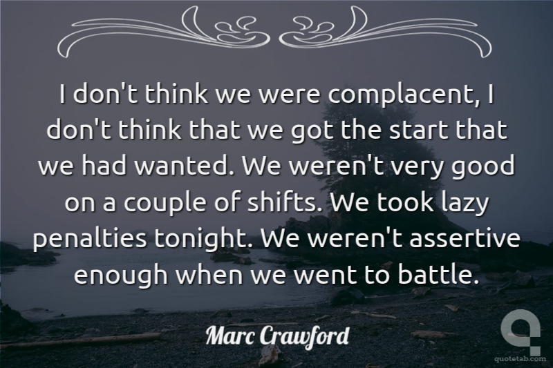 I don't think we were complacent, I don't think that we got the start that we had wanted. We weren't very good on a couple of shifts. We took lazy penalties tonight. We weren't assertive enough when we went to battle. Marc Crawford