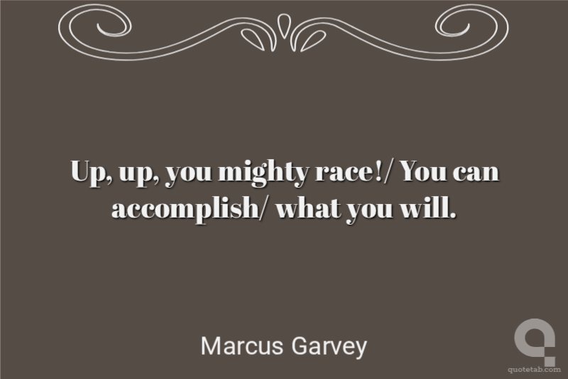 Up, up, you mighty race!/ You can accomplish/ what you will. Marcus Garvey