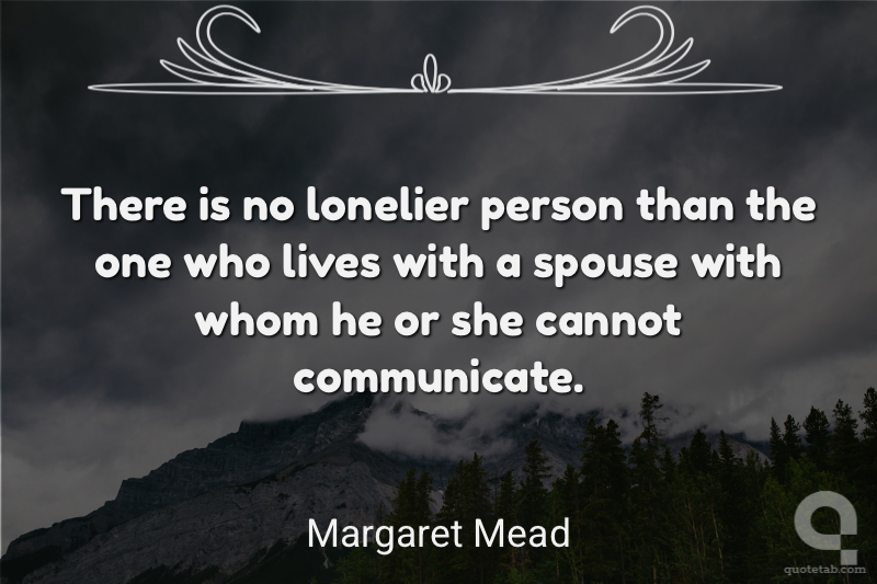 There is no lonelier person than the one who lives with a spouse with whom he or she cannot communicate. Margaret Mead