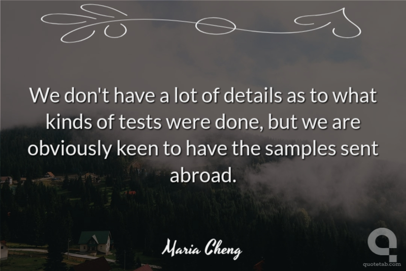 This is not confirmation for us. We need to have samples sent to a certified laboratory. Dick Thompson