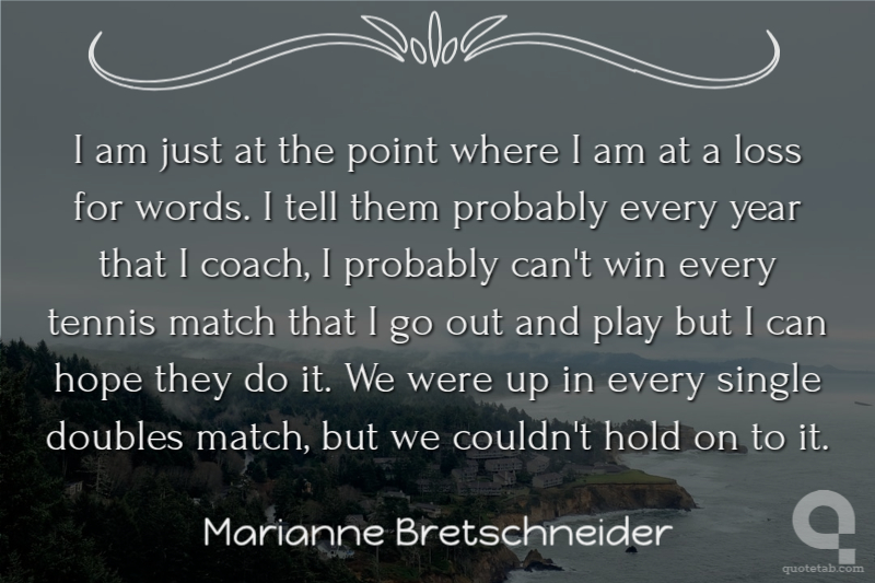 I am just at the point where I am at a loss for words. I tell them probably every year that I coach, I probably can't win every tennis match that I go out and play but I can hope they do it. We were up in every single doubles match, but we couldn't hold on to it. Marianne Bretschneider