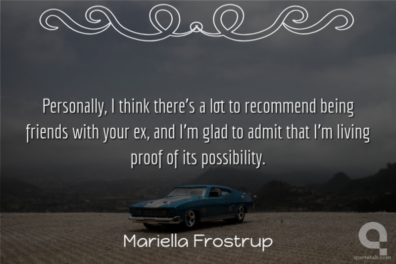Personally, I think there's a lot to recommend being friends with your ex, and I'm glad to admit that I'm living proof of its possibility. Mariella Frostrup