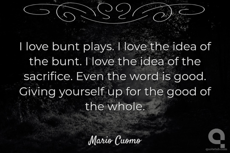 I love bunt plays. I love the idea of the bunt. I love the idea of the sacrifice. Even the word is good. Giving yourself up for the good of the whole. Mario Cuomo