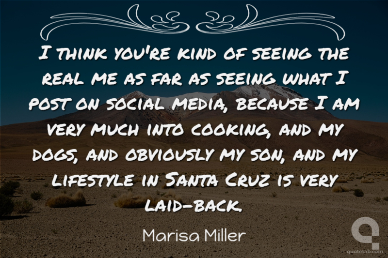 I think you're kind of seeing the real me as far as seeing what I post on social media, because I am very much into cooking, and my dogs, and obviously my son, and my lifestyle in Santa Cruz is very laid-back. Marisa Miller