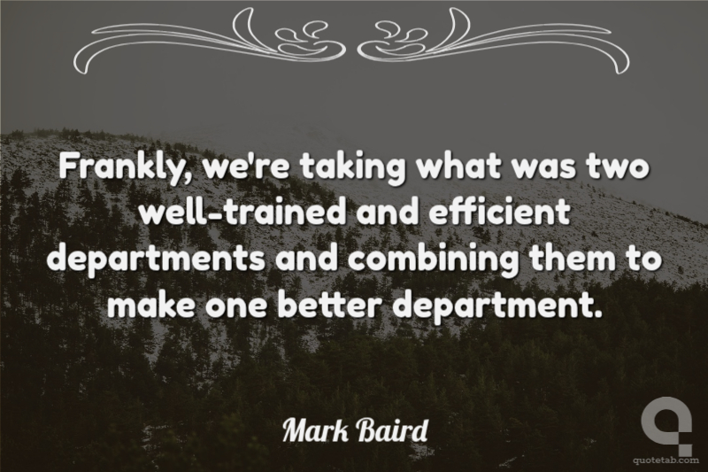 Frankly, we're taking what was two well-trained and efficient departments and combining them to make one better department. Mark Baird