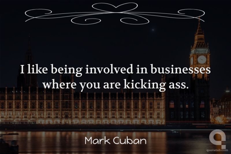 I like being involved in businesses where you are kicking ass. Mark Cuban