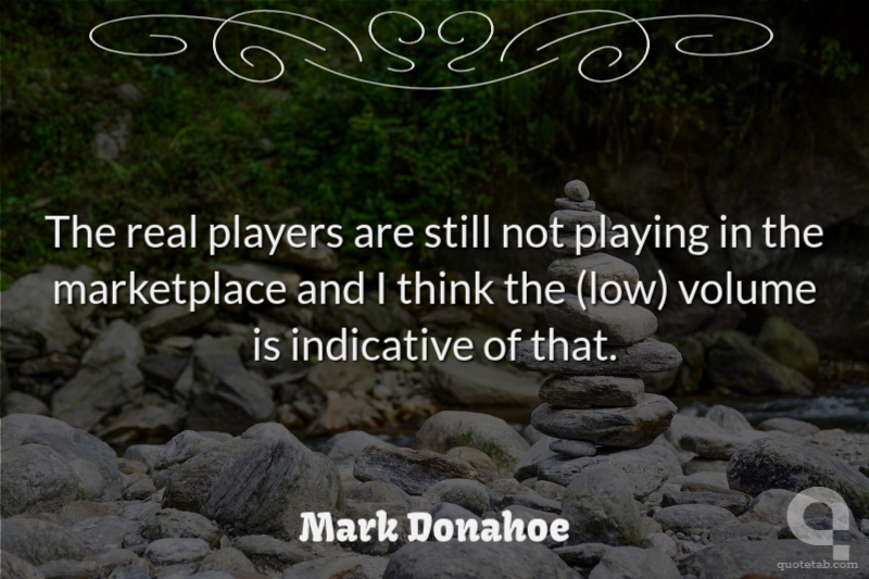 The real players are still not playing in the marketplace and I think the (low) volume is indicative of that. Mark Donahoe