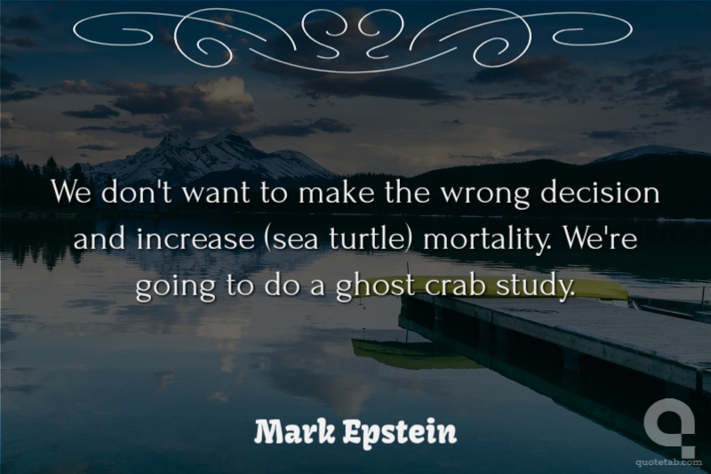 We don't want to make the wrong decision and increase (sea turtle) mortality. We're going to do a ghost crab study. Mark Epstein
