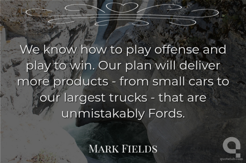 We know how to play offense and play to win. Our plan will deliver more products - from small cars to our largest trucks - that are unmistakably Fords. Mark Fields