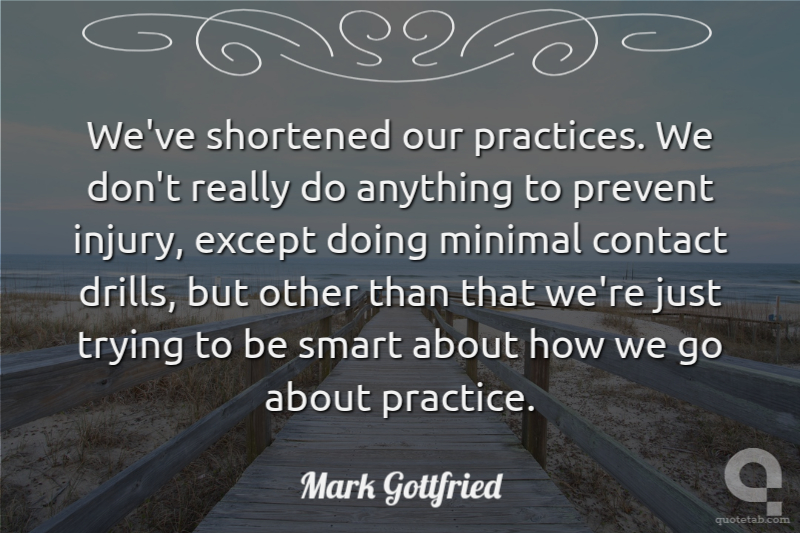 We've shortened our practices. We don't really do anything to prevent injury, except doing minimal contact drills, but other than that we're just trying to be smart about how we go about practice. Mark Gottfried