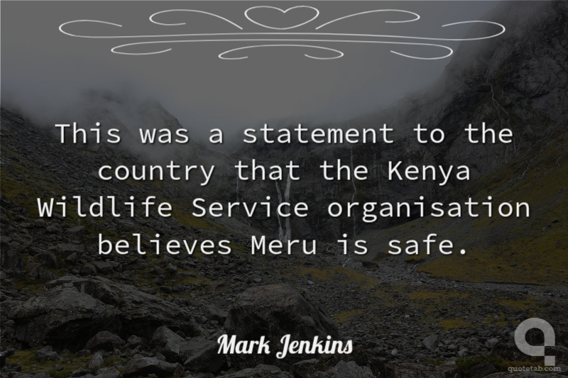 This was a statement to the country that the Kenya Wildlife Service organisation believes Meru is safe. Mark Jenkins