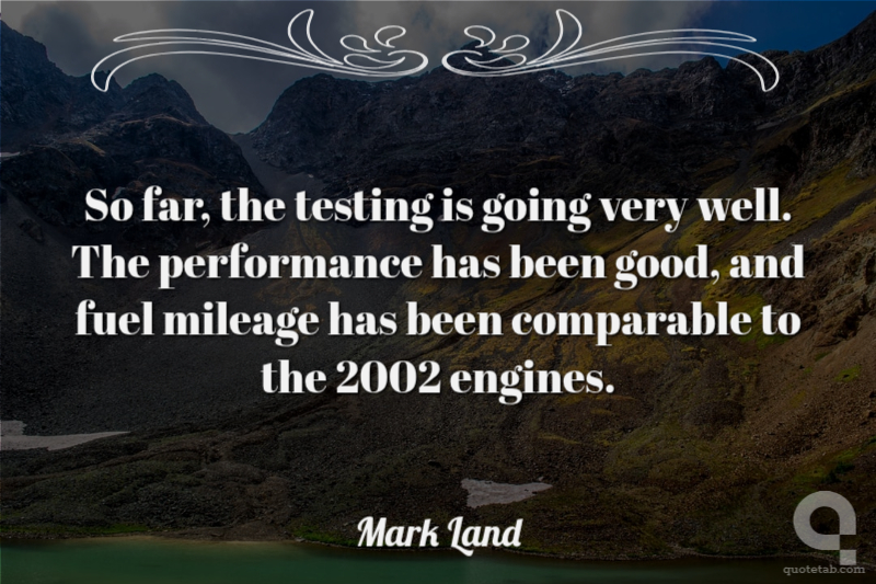 So far, the testing is going very well. The performance has been good, and fuel mileage has been comparable to the 2002 engines. Mark Land