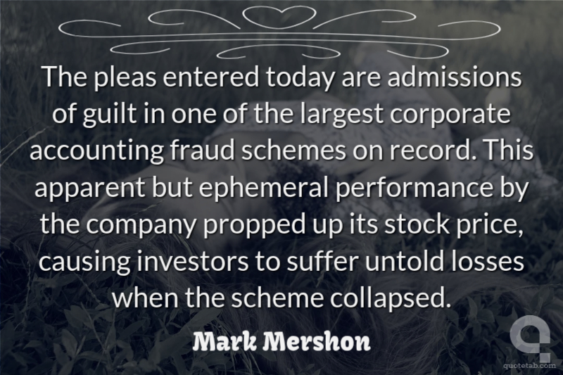 The pleas entered today are admissions of guilt in one of the largest corporate accounting fraud schemes on record. This apparent but ephemeral performance by the company propped up its stock price, causing investors to suffer untold losses when the scheme collapsed. Mark Mershon