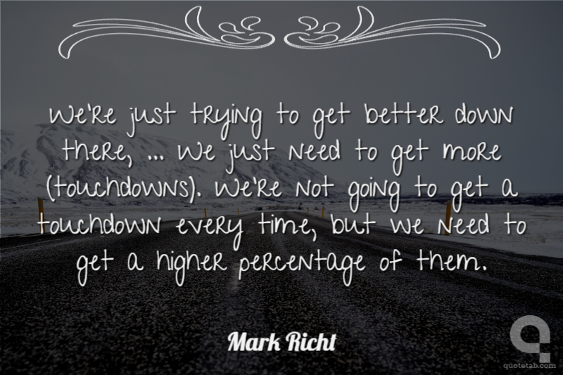 We're just trying to get better down there, ... We just need to get more (touchdowns). We're not going to get a touchdown every time, but we need to get a higher percentage of them. Mark Richt