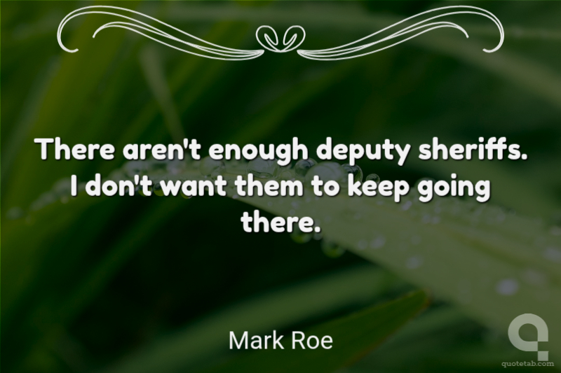 There aren't enough deputy sheriffs. I don't want them to keep going there. Mark Roe