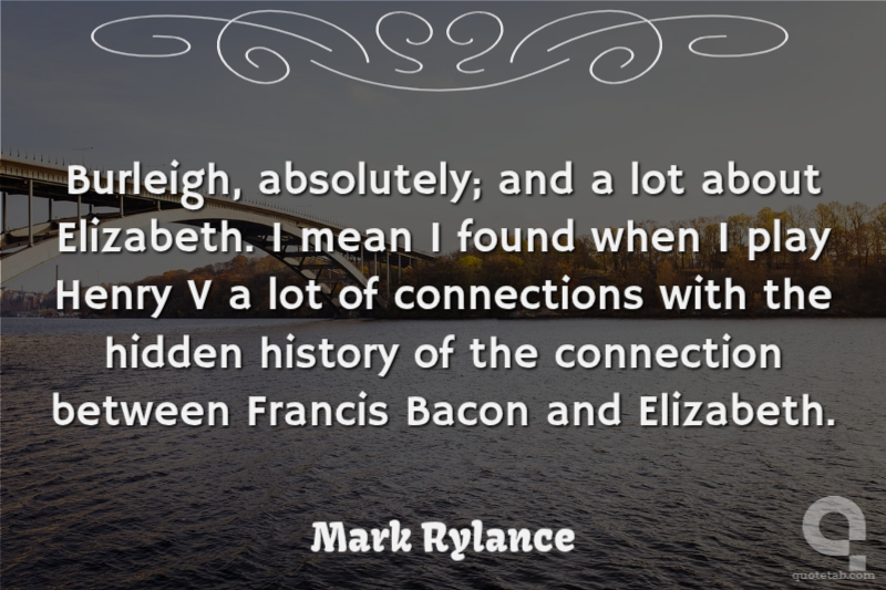 Burleigh, absolutely; and a lot about Elizabeth. I mean I found when I play Henry V a lot of connections with the hidden history of the connection between Francis Bacon and Elizabeth. Mark Rylance