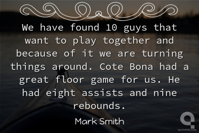 We have found 10 guys that want to play together and because of it we are turning things around. Cote Bona had a great floor game for us. He had eight assists and nine rebounds. Mark Smith