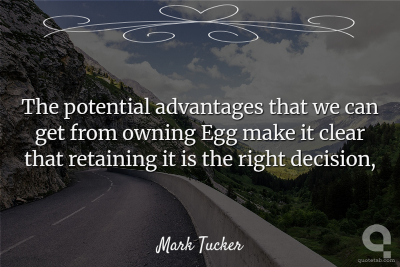 The potential advantages that we can get from owning Egg make it clear that retaining it is the right decision, Mark Tucker