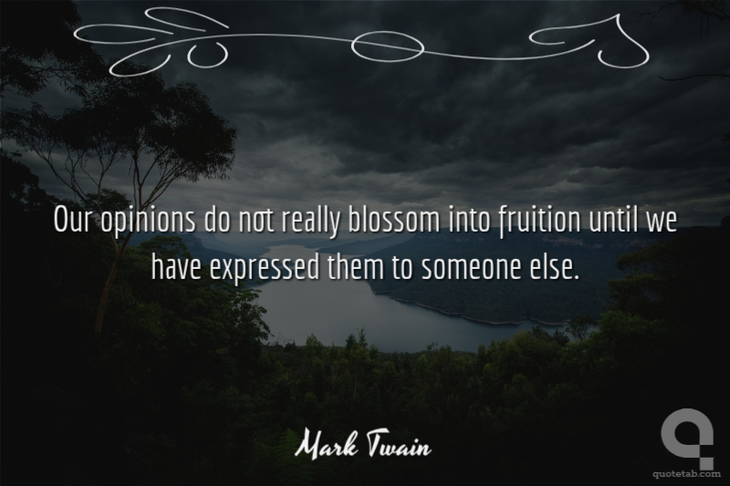 Our opinions do not really blossom into fruition until we have expressed them to someone else. Mark Twain