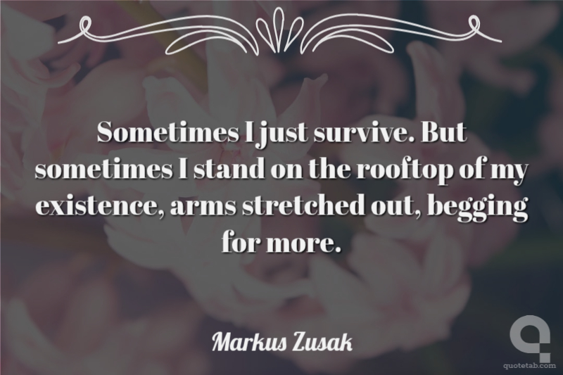 Sometimes I just survive. But sometimes I stand on the rooftop of my existence, arms stretched out, begging for more. Markus Zusak