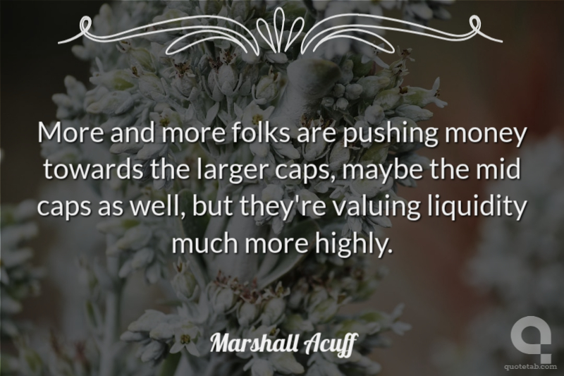 More and more folks are pushing money towards the larger caps, maybe the mid caps as well, but they're valuing liquidity much more highly. Marshall Acuff
