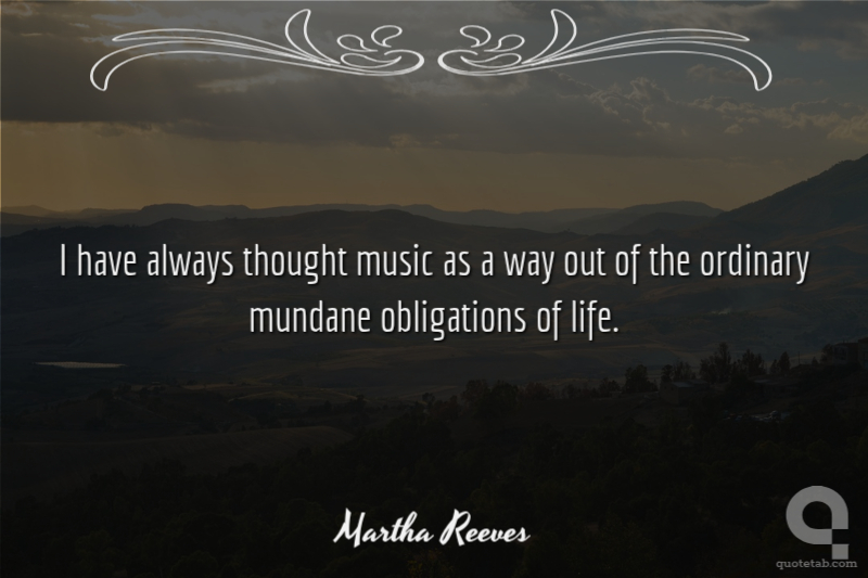 I have always thought music as a way out of the ordinary mundane obligations of life. Martha Reeves
