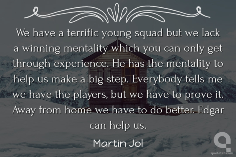 We have a terrific young squad but we lack a winning mentality which you can only get through experience. He has the mentality to help us make a big step. Everybody tells me we have the players, but we have to prove it. Away from home we have to do better. Edgar can help us. Martin Jol