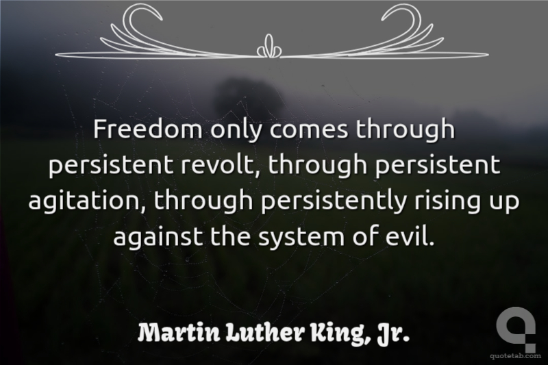 Freedom only comes through persistent revolt, through persistent agitation, through persistently rising up against the system of evil. Martin Luther King, Jr.